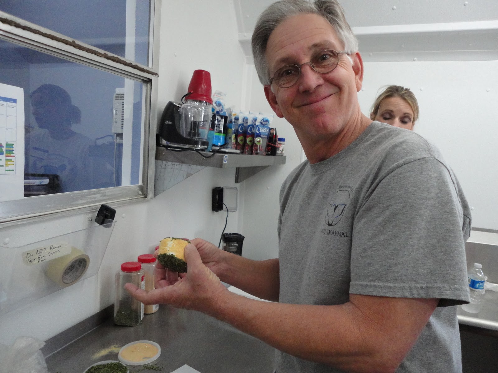 Ron busy adding garlic and chives to the cheese which was DELICIOUS!